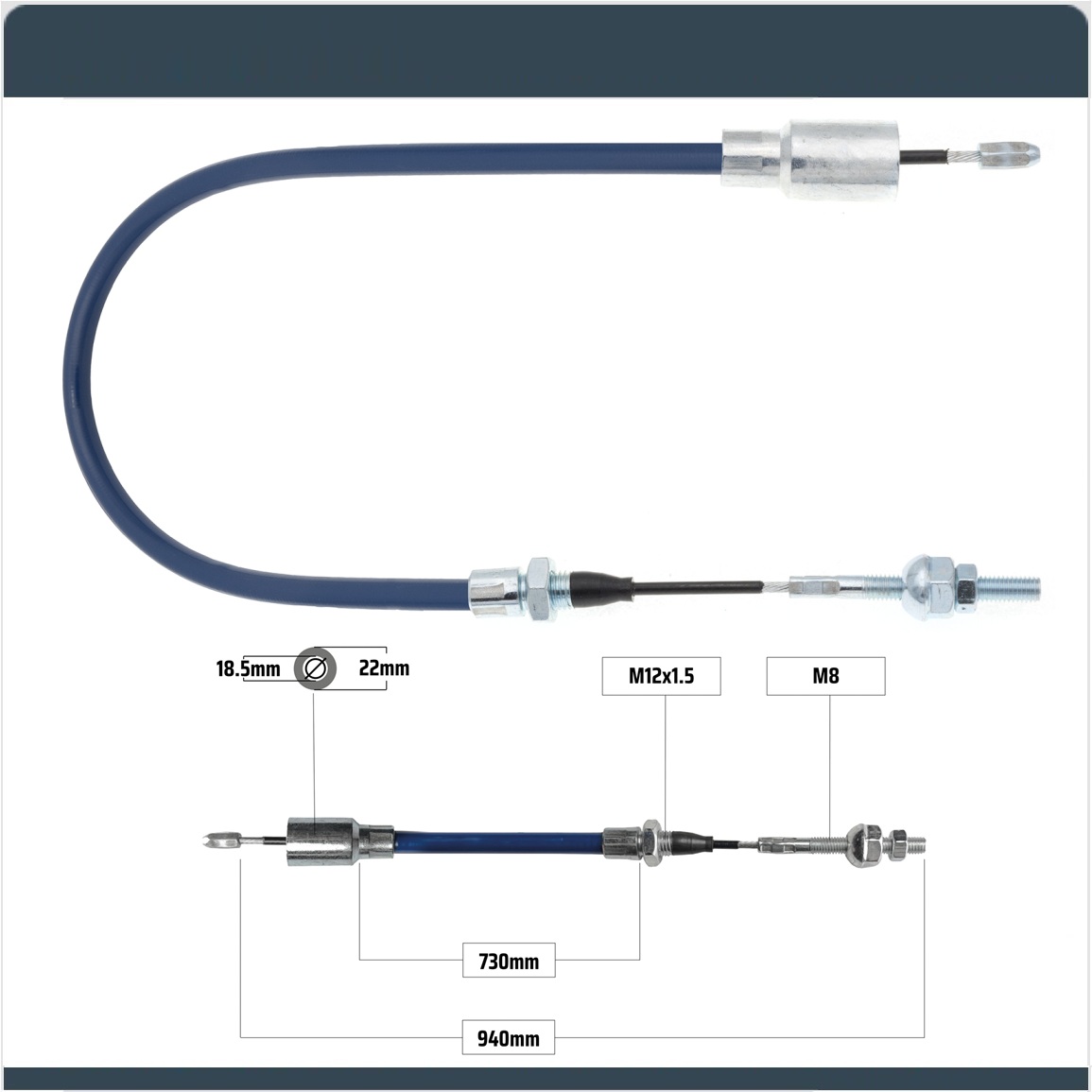 NB PARTS Bremsseil 940/730 mm – Glocke Ø 18,5 × 22,0 mm – M8 passend für KNOTT 33921-1.06